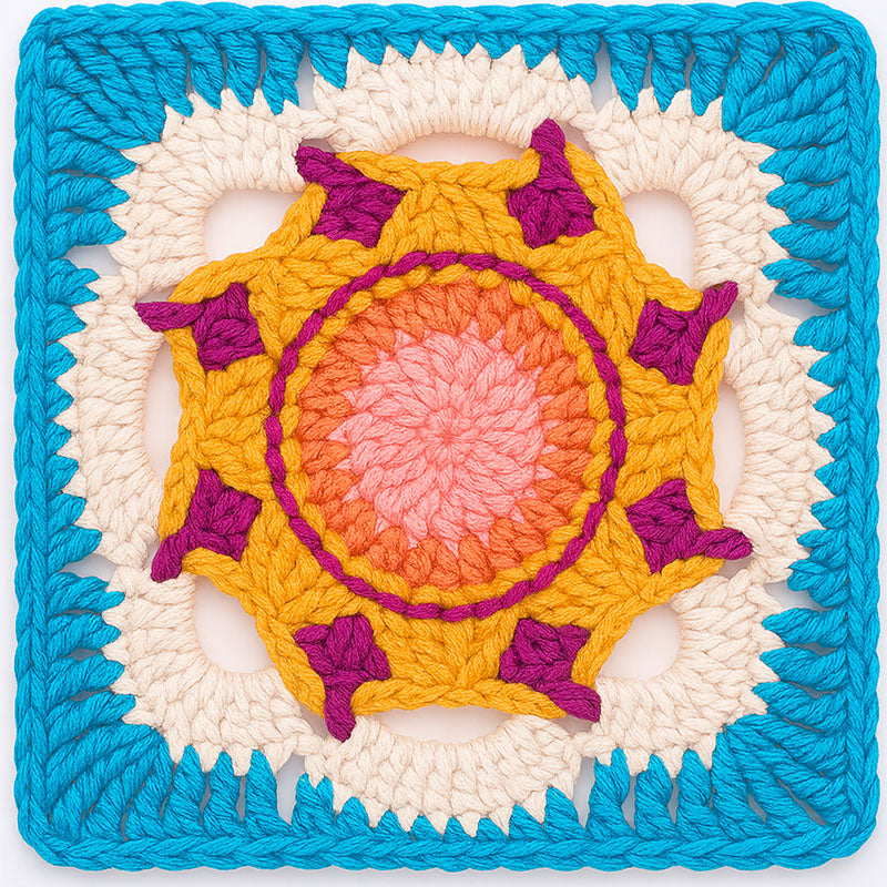 On the front is the Granny Square design, while the back shows the pattern. You can also find detailed instructions for every Granny Square in the user guide booklet.